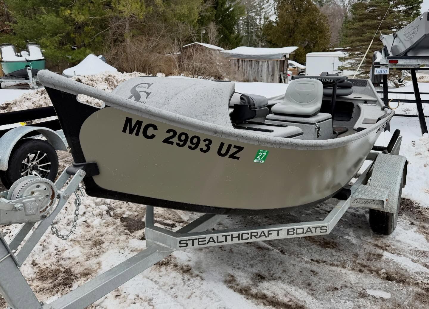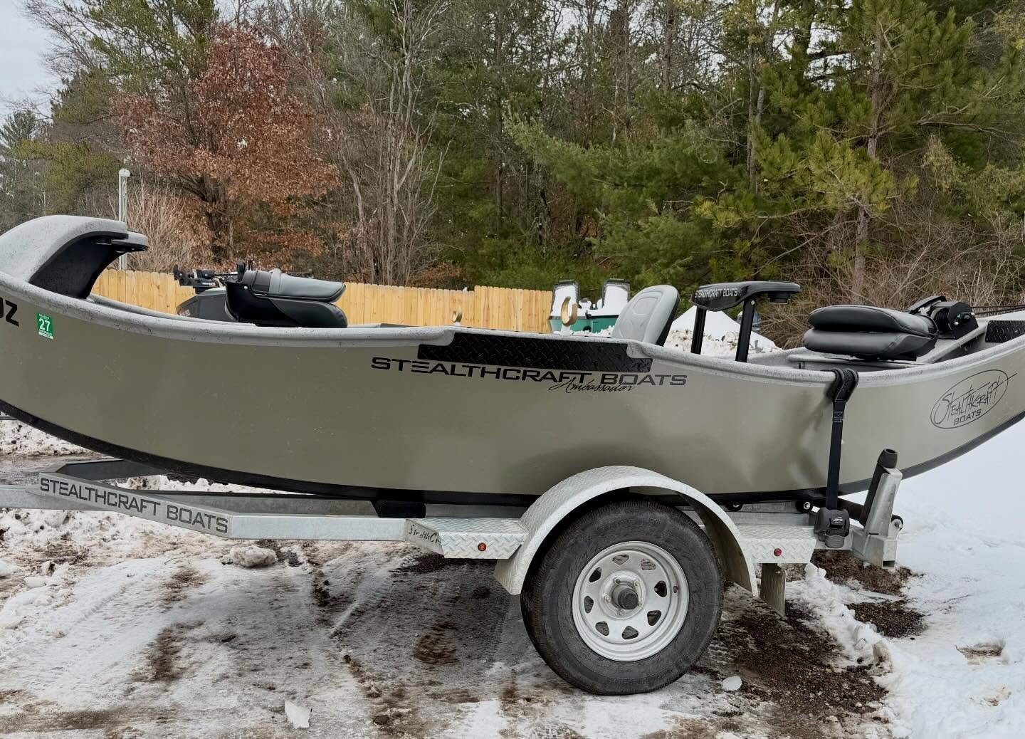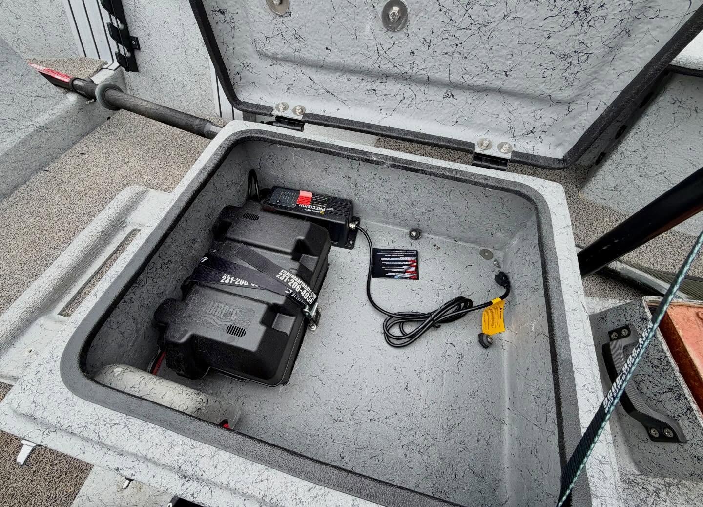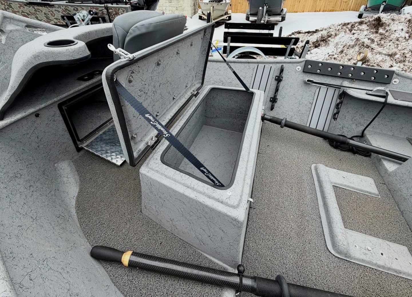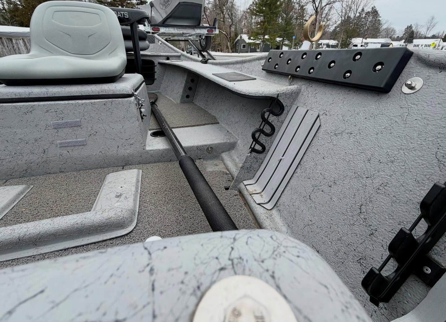 BOAT – Double Box up front with seating for 1 or 2, Double trays spots and golf tubes for up to 8 rods, Sawyer Bandit Oars, Spaghetti Matt, and Cover.