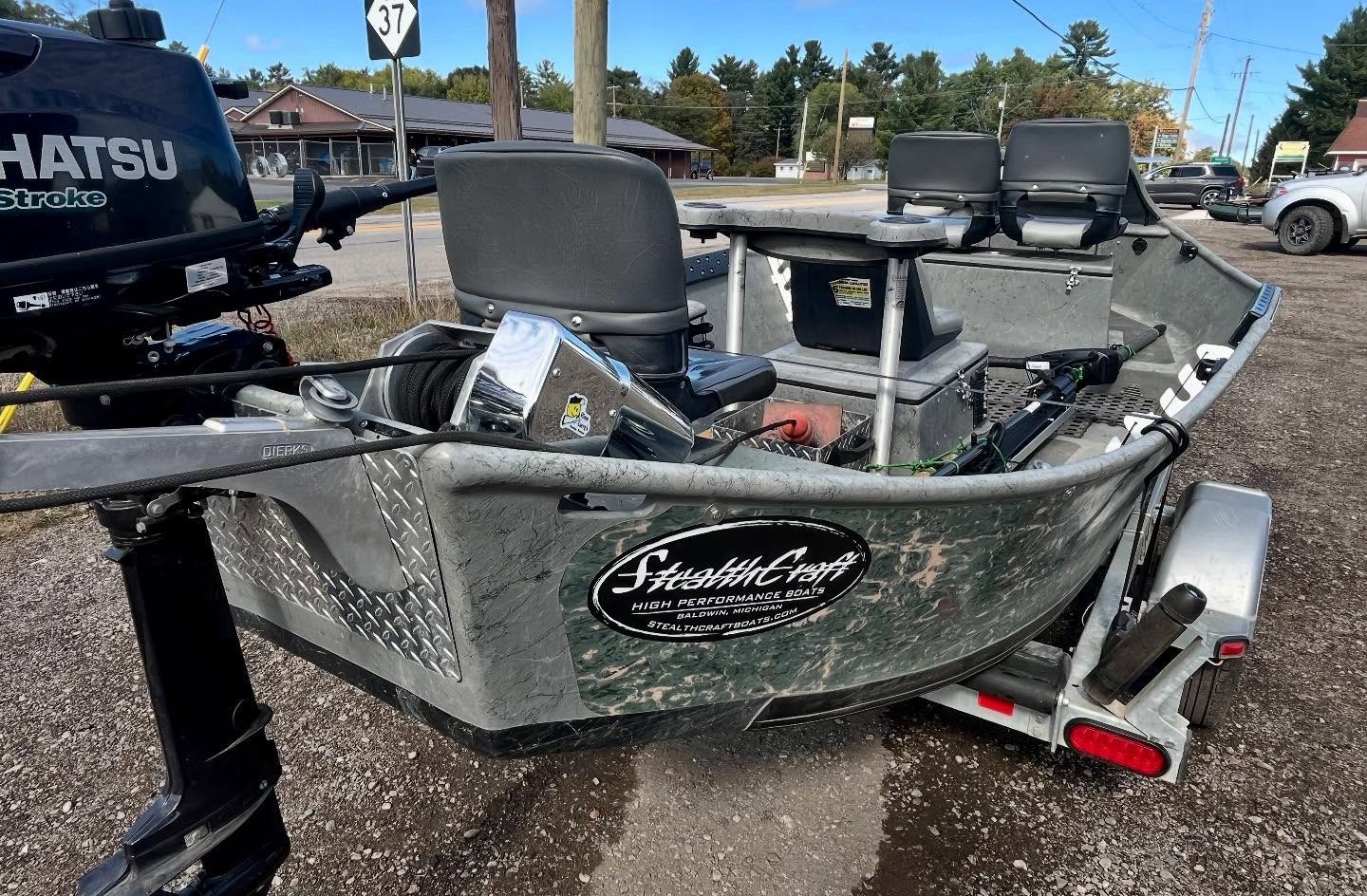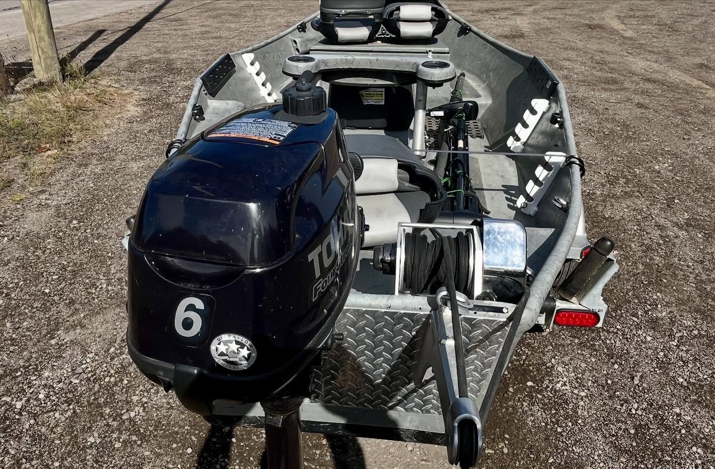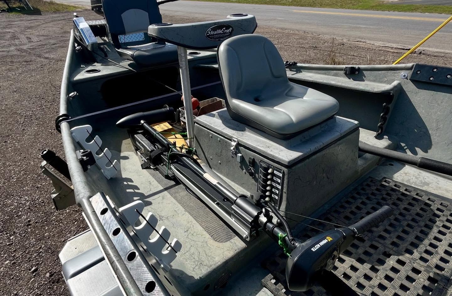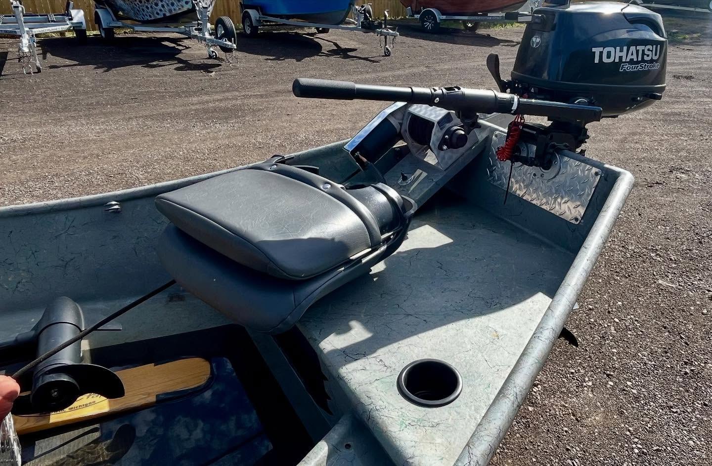 BOAT – power anchor, lights, interior lights, exterior lights, Rod Holders inside on board charger, trolling motor, Dakota Lithium Battery in Bow for Troller, oars has everything, Cover, seating for 1,2 up front and one in the back.