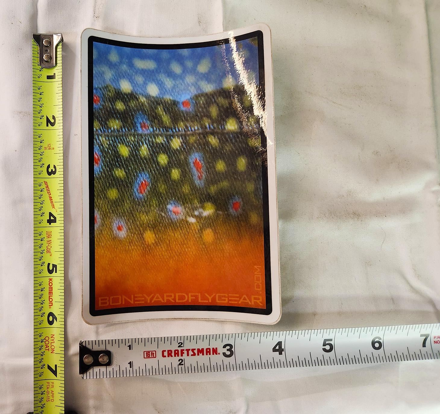 Home / Store / Decals & Stickers / BoneYard Stickers / BoneYard Fly Gear – Fish Skin – Sticker BoneYard Fly Gear – Fish Skin – Sticker$6.00 BoneYard Fly Gear - Fish Skin - Sticker quantity Add to cart SKU: 029733569073 Category: BoneYard Stickers Description Additional information Description 4″ X 6″ Sticker – BoneYard Fly Gear – Fish Skin. Additional information Weight 0.0375 lbs Dimensions 4.0 × 0.025 × 6.0 in Related products BoneYard Fly Gear – SUV with Hooligan Raft – Sticker $6.00 Add to cart BoneYard Fly Gear “Escape The Grind” – Sticker $6.00 Add to cart BoneYard Fly Gear – Recycle – Sticker $6.00 Add to cart BoneYard Fly Gear – Mermaid with SteelHead – Sticker $6.00 Add to cart