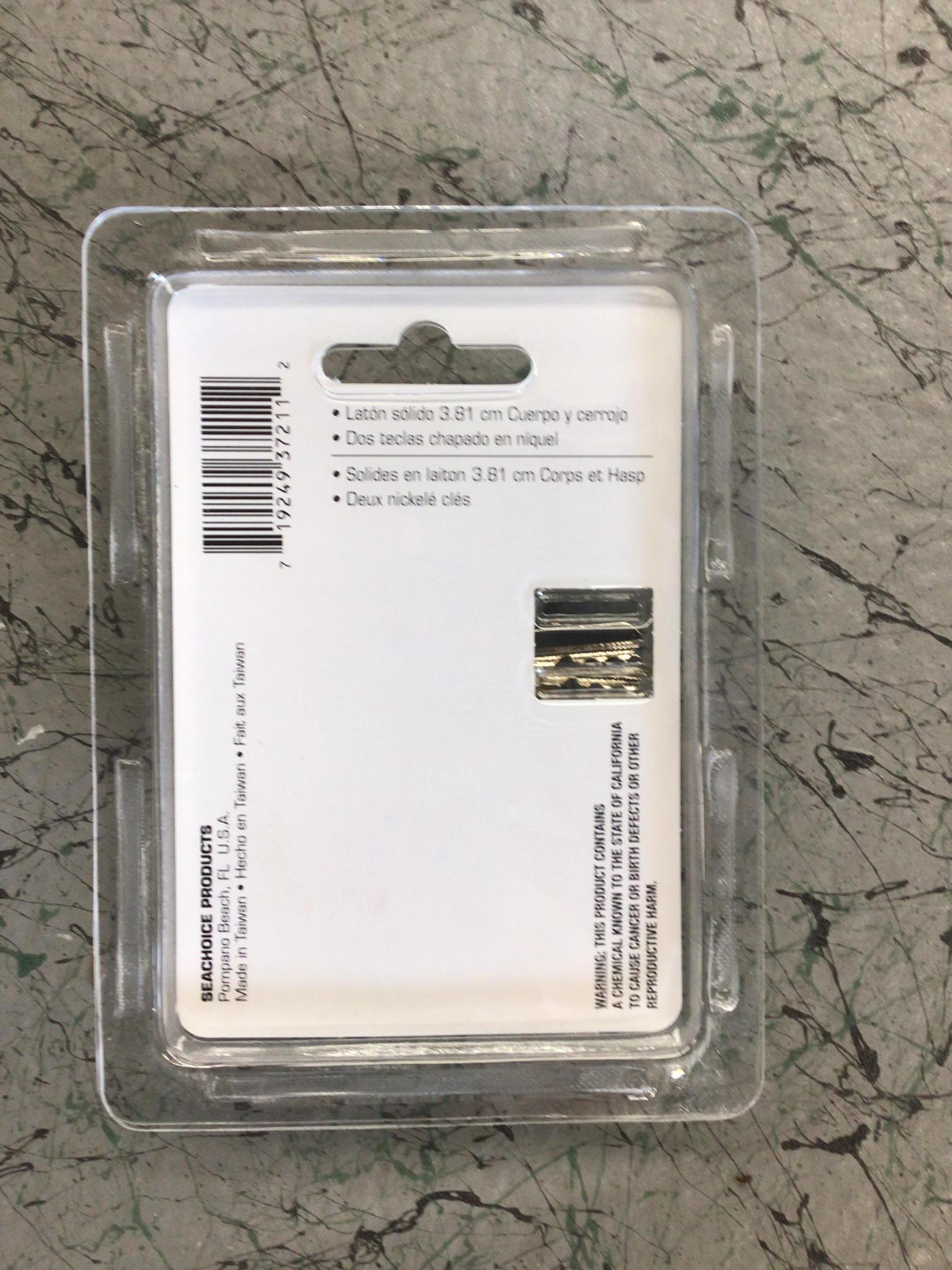 Home / Store / Boat Supply Kits / Brass Padlocks 1 – 1/2” (Seachoice) Brass Padlocks 1 – 1/2” (Seachoice)$12.09 Brass Padlocks 1 - 1/2” (Seachoice) quantity Add to cart Category: Boat Supply Kits Description Additional information Description Solid Brass 1 – 1/2″ Body and Hasp 2 Nickel Plated Keys Additional information Weight 0.5 lbs Dimensions 4.0 × 1.0 × 5.25 in Related products Daytripper Boater’s First Aid Kit $17.99 Add to cart 6 Gallon Gas Tank (Attwood) $101.39 Add to cart Brass Padlocks 2” (Seachoice) $19.89 Add to cart SeaChoice Youth Life Vest $27.19 Add to cart