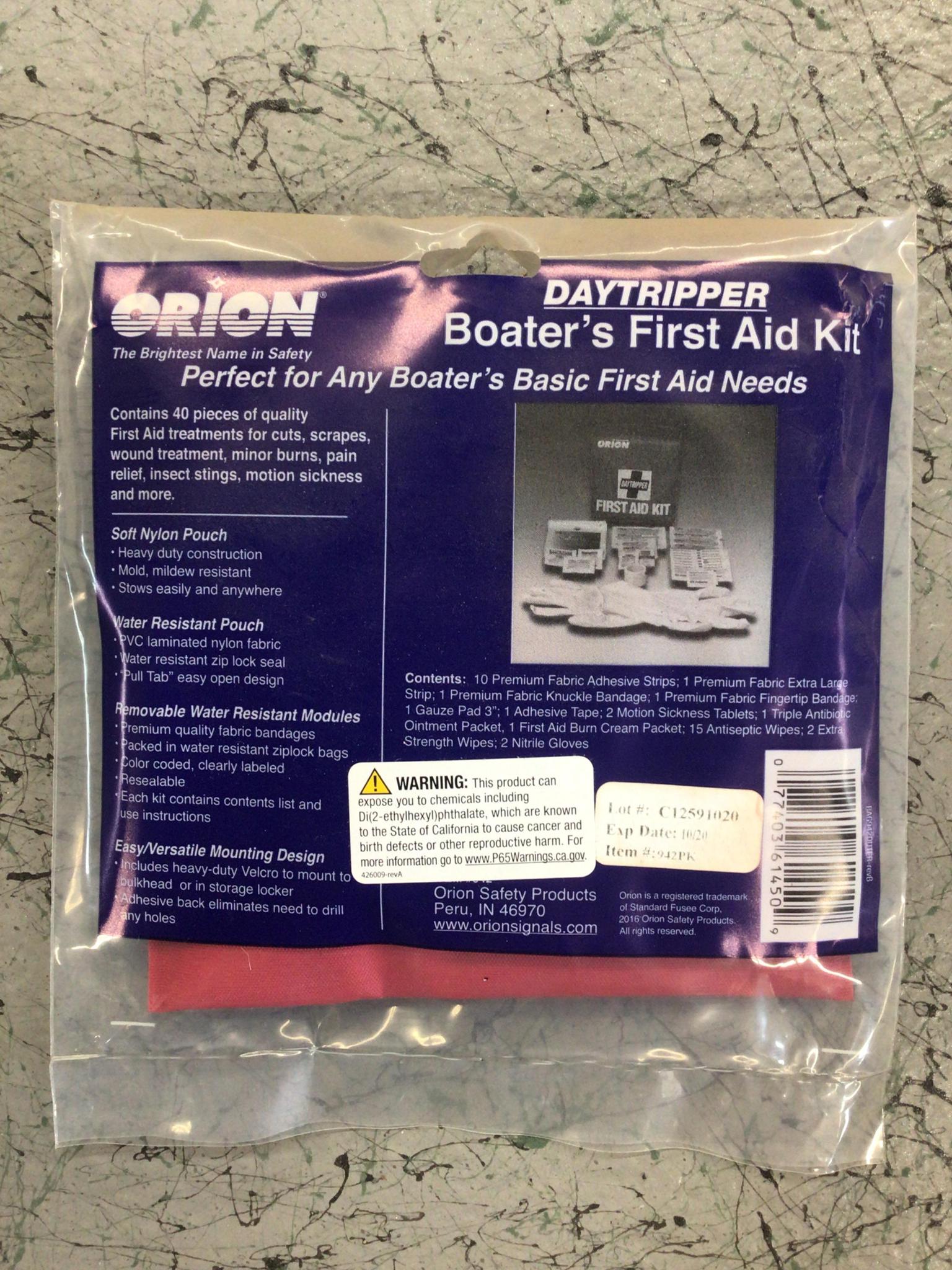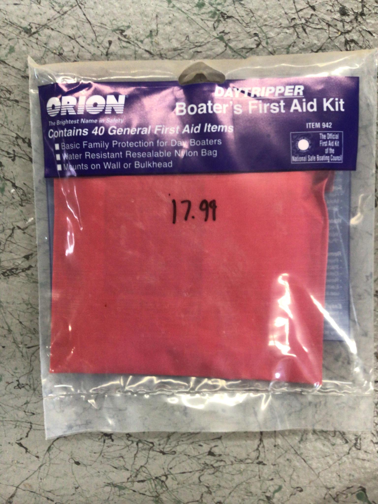 Home / Store / Boat Supply Kits / Daytripper Boater’s First Aid Kit Daytripper Boater’s First Aid Kit$17.99 Daytripper Boater’s First Aid Kit quantity Add to cart Category: Boat Supply Kits Description Additional information Description Contains 40 General First Aid Items. Basic family protection for day boaters Water resistant resealable nylon bag Mounts on Wall or bulkhead Additional information Weight 0.5 lbs Dimensions 7.25 × 0.125 × 6.75 in Related products Brass Padlocks 2” (Seachoice) $19.89 Add to cart Brass Padlocks 1 – 1/4” (Seachoice) $9.69 Add to cart SeaChoice Youth Life Vest $27.19 Add to cart Brass Padlocks 1 – 1/2” (Seachoice) $12.09 Add to cart