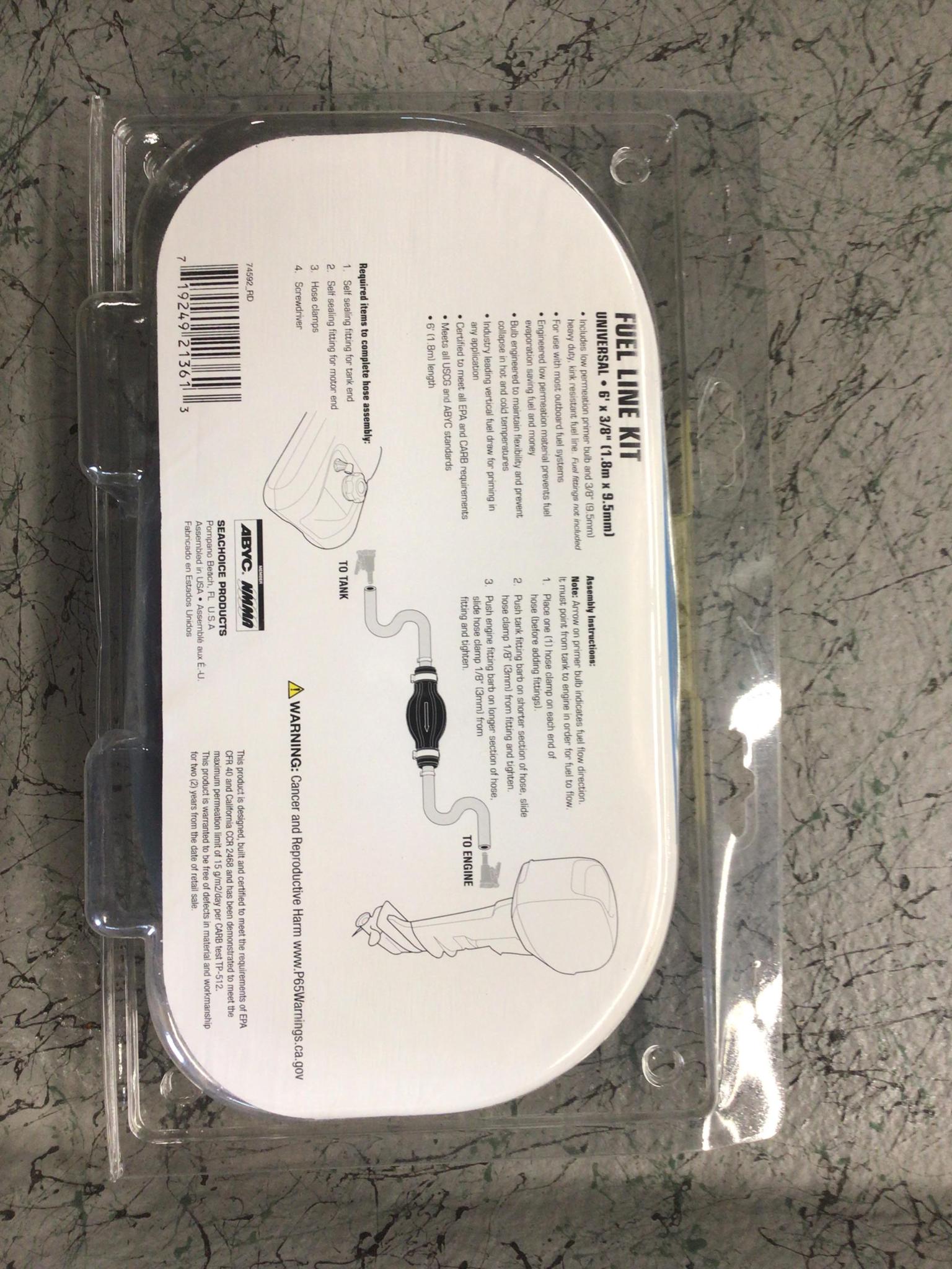 Home / Store / Parts and Accessories / Fuel Line Kit (Seachoice) Fuel Line Kit (Seachoice)$40.09 Fuel Line Kit (Seachoice) quantity Add to cart Category: Parts and Accessories Description Additional information Description Fast priming high output primer bulb Kink resistant heavy duty fuel line Compatible with ethanol blended fuels Additional information Weight 1.0 lbs Dimensions 12.5 × 3.0 × 8.0 in Related products Extension Tiller Handle $70.00 Add to cart Folbe Advantage Quick Release “JR” $53.99 Add to cart Drain Plug – Small $8.00 Add to cart Seachoice Honda Fuel Connector (Model 20441) $11.96 Add to cart