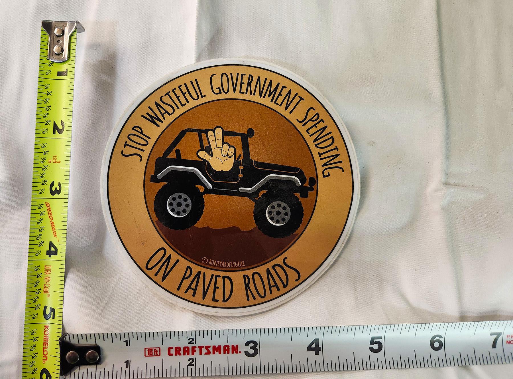 4.5 x 5 Sticker – Stop Wasteful Government Spending on Paved Roads.