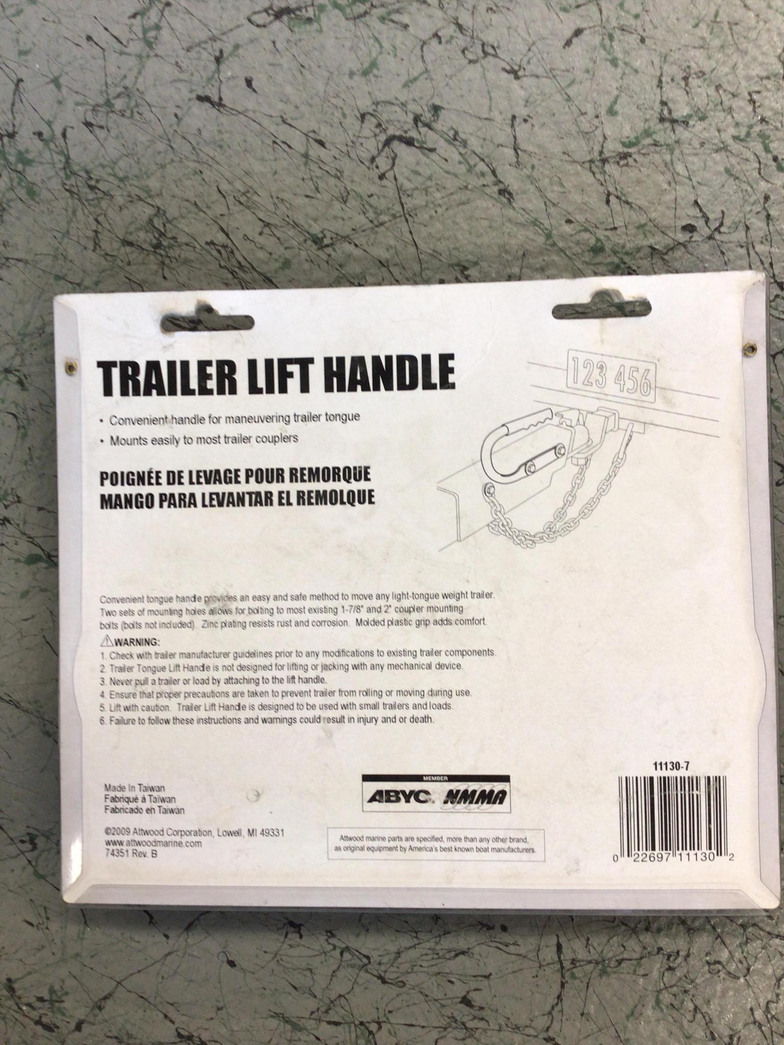 Home / Store / Parts and Accessories / Trailer Lift Handle Trailer Lift Handle$11.99 Trailer Lift Handle quantity Add to cart Category: Parts and Accessories Description Additional information Description Convenient handle for maneuvering trailer Mounts easily to most trailer couplers Additional information Weight 4.0 lbs Dimensions 9.12 × 1.0 × 8.0 in Related products Folbe Advantage Quick Release “JR” $53.99 Add to cart Marine Motor Stik Outboard Motor Support $64.09 Add to cart Oar-Rights $32.95 Add to cart Seachoice Starport Accessory Rail Base $22.95 Add to cart
